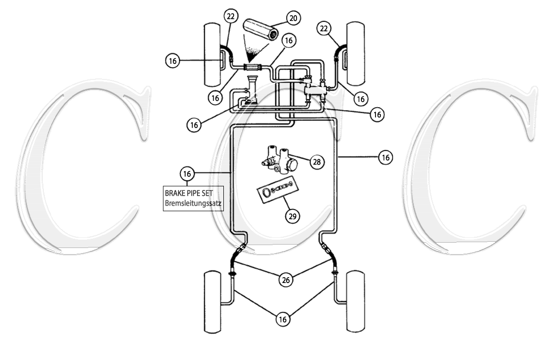 | 16 | Bremsleitungssatz | 1 | Bitte kontaktieren Sie uns mit genauen Angaben über Ihr Fahrzeug, damit wir Sie mit dem korrekten Bremsleitungssatz beliefern können. Lieferfrist ca. 2 Wochen. | |||
