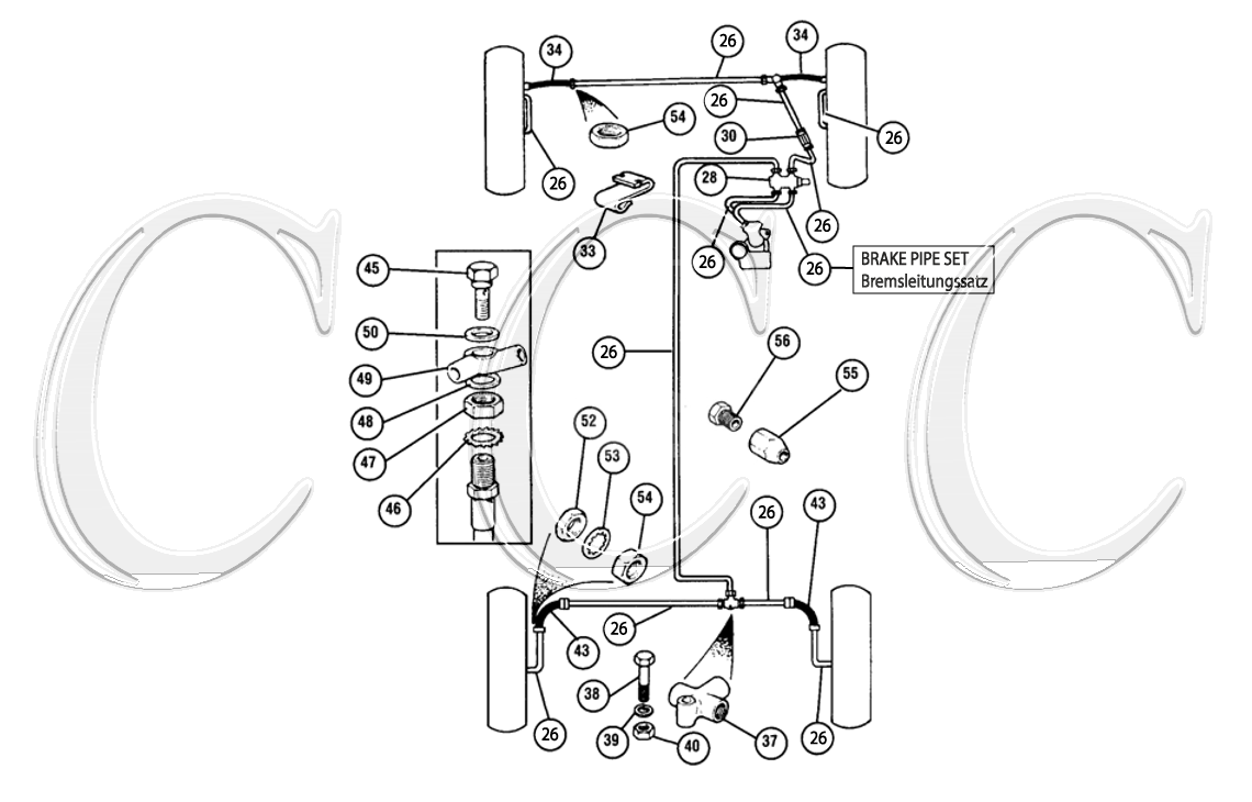 | 26 | Bremsleitungssatz | 1 | Bitte kontaktieren Sie uns mit genauen Angaben über Ihr Fahrzeug, damit wir Sie mit dem korrekten Bremsleitungssatz beliefern können. Lieferfrist ca. 2 Wochen. | |||