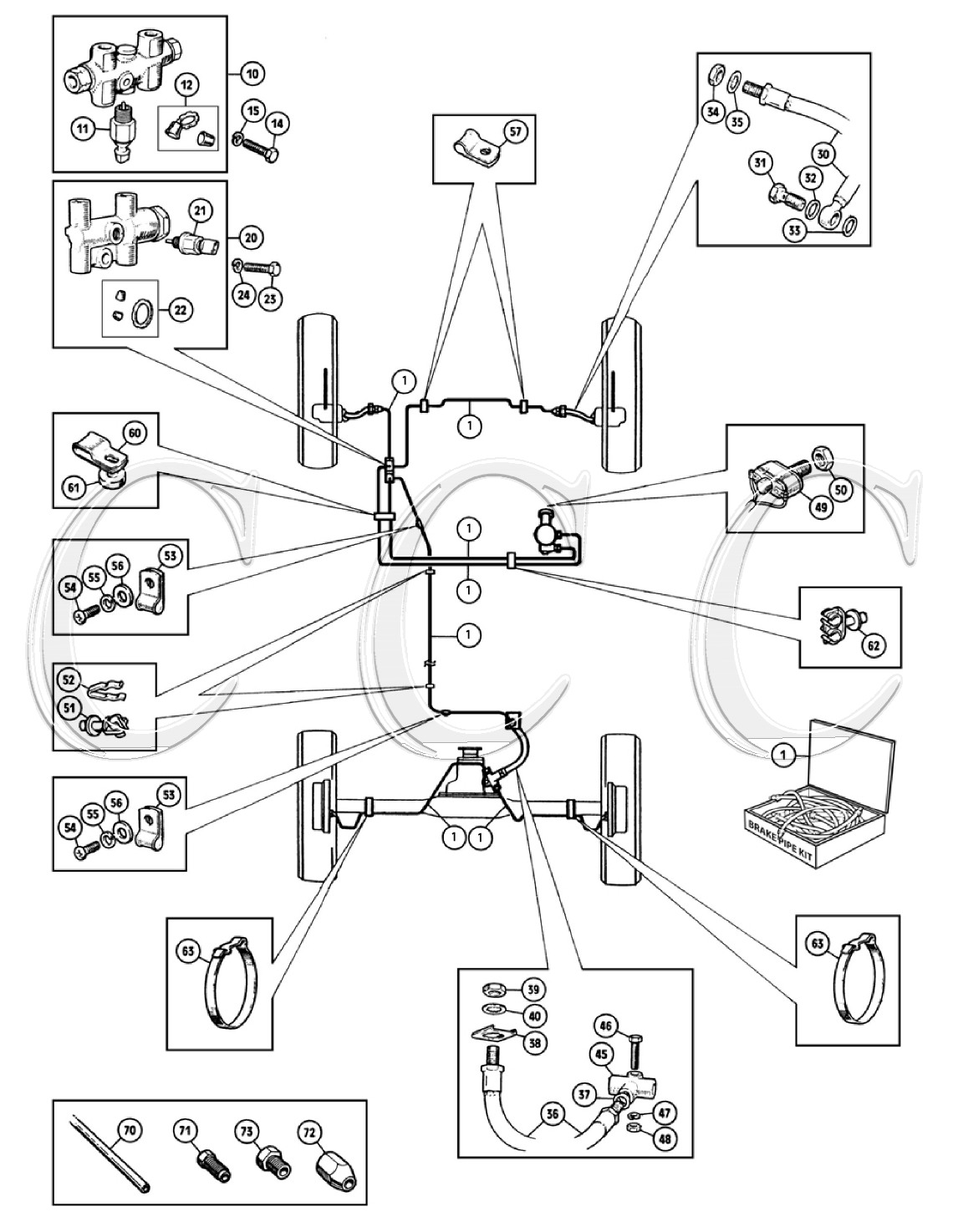 BRAKE PIPE SET, CUNIFER, RHD, DUAL LINE SYSTEM